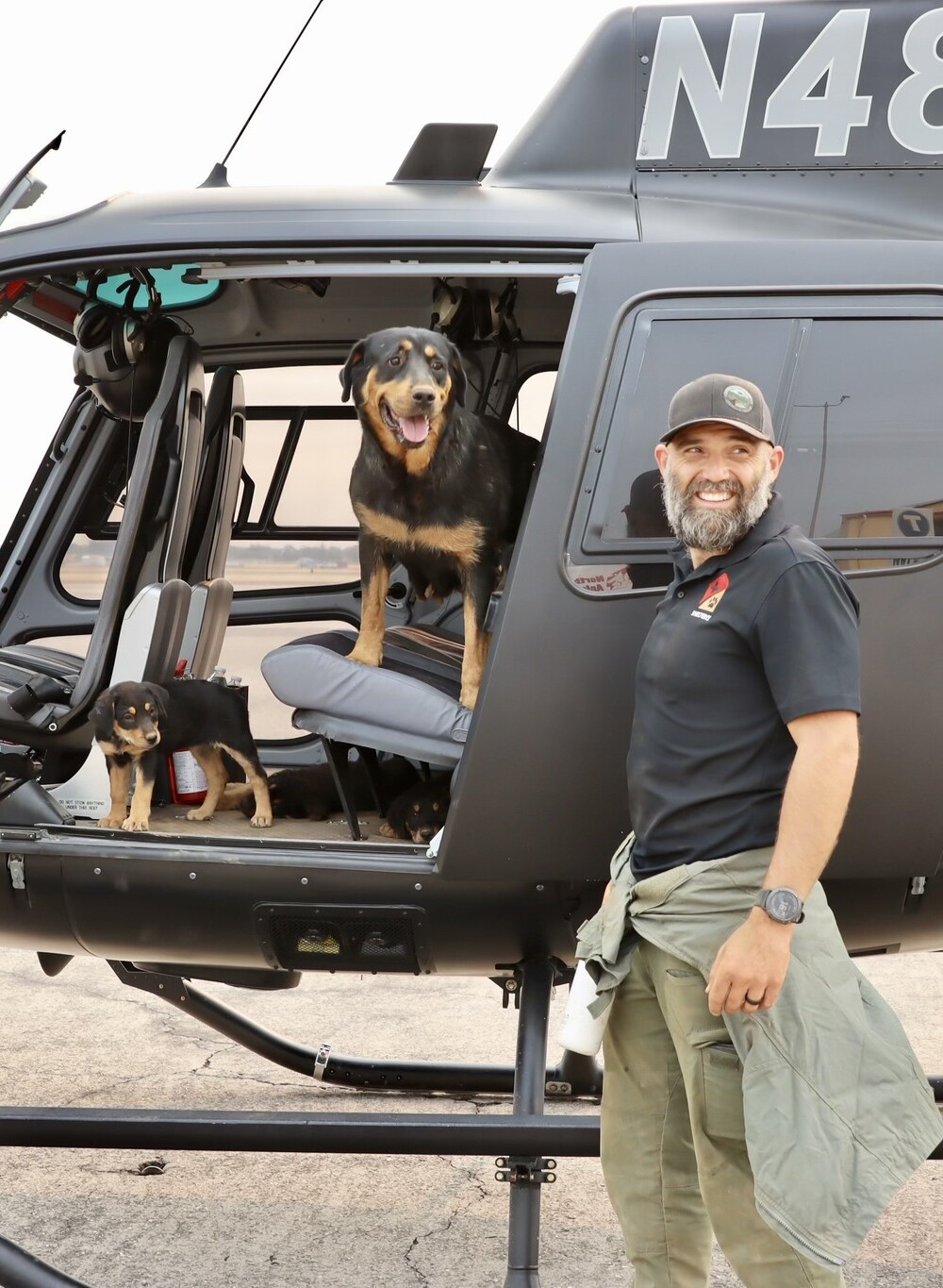Days later, on July 27, BCSO SAR member Trevor Skaggs was flown into the area by pilot Conner Smith. Once on the ground, Skaggs ran 1.5 miles through difficult terrain to reach the stranded animals. Upon arrival, he found the mother and her puppies alive, though in dire need of food and water. Sadly, the father Rottweiler had not survived the ordeal.