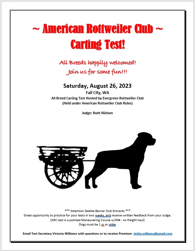 Evergreen Rottweiler Club to hold a Carting Test - New Location - Fall City, WA